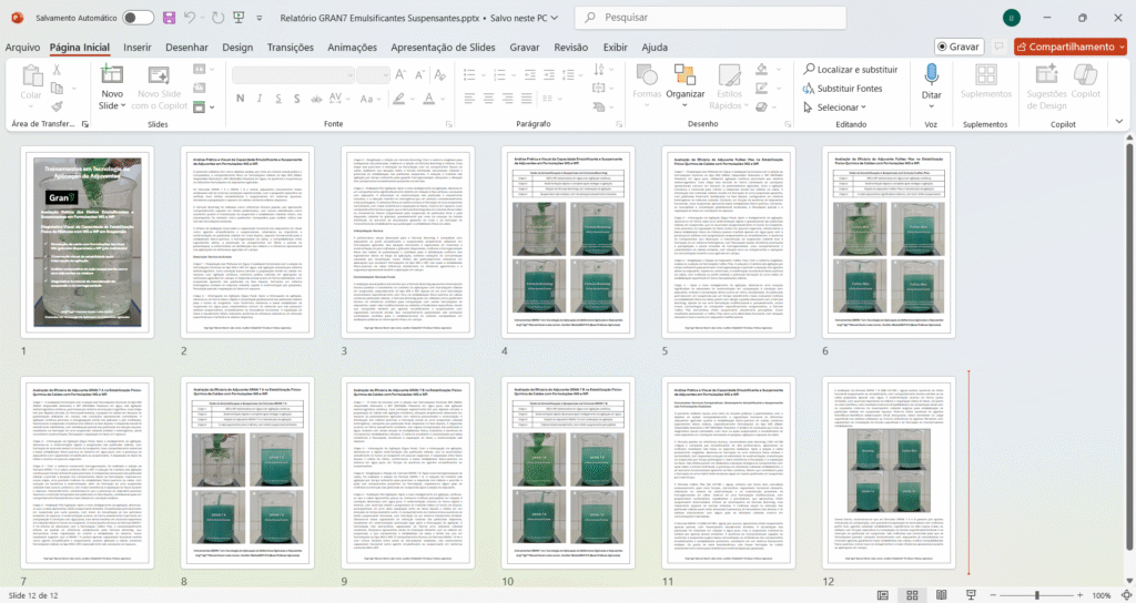 Exemplo de Relatórios: Análise Prática e Visual da Capacidade Emulsificante e Suspensante de Adjuvantes em Formulações WG e WP.