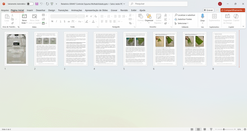 Exemplos de Relatório: Avaliação Prática da Eficiência no Controle e Redução de Espuma. Metodologia de Análise Visual para Quantificação do Efeito de Redução e Controle de Espuma.
